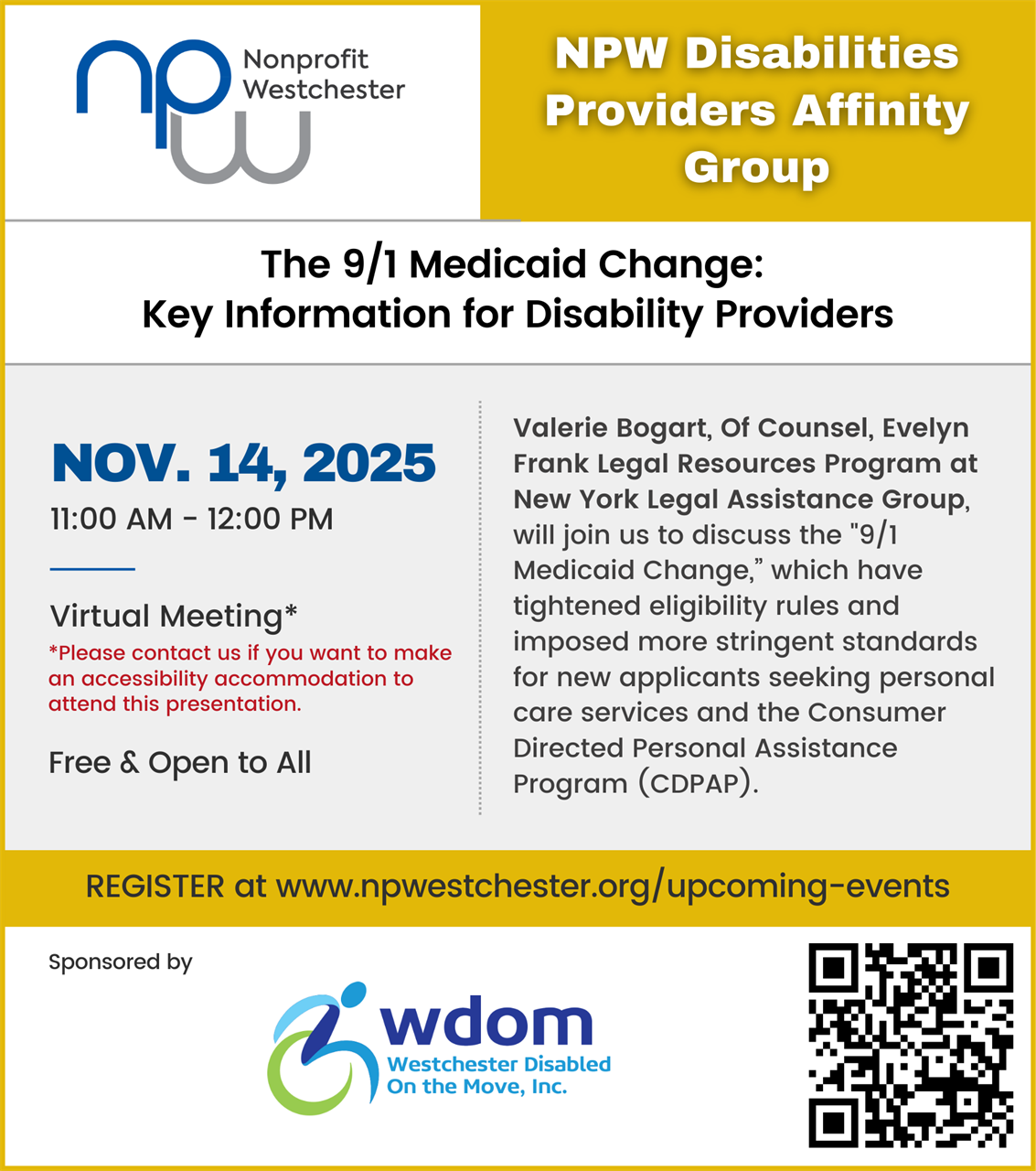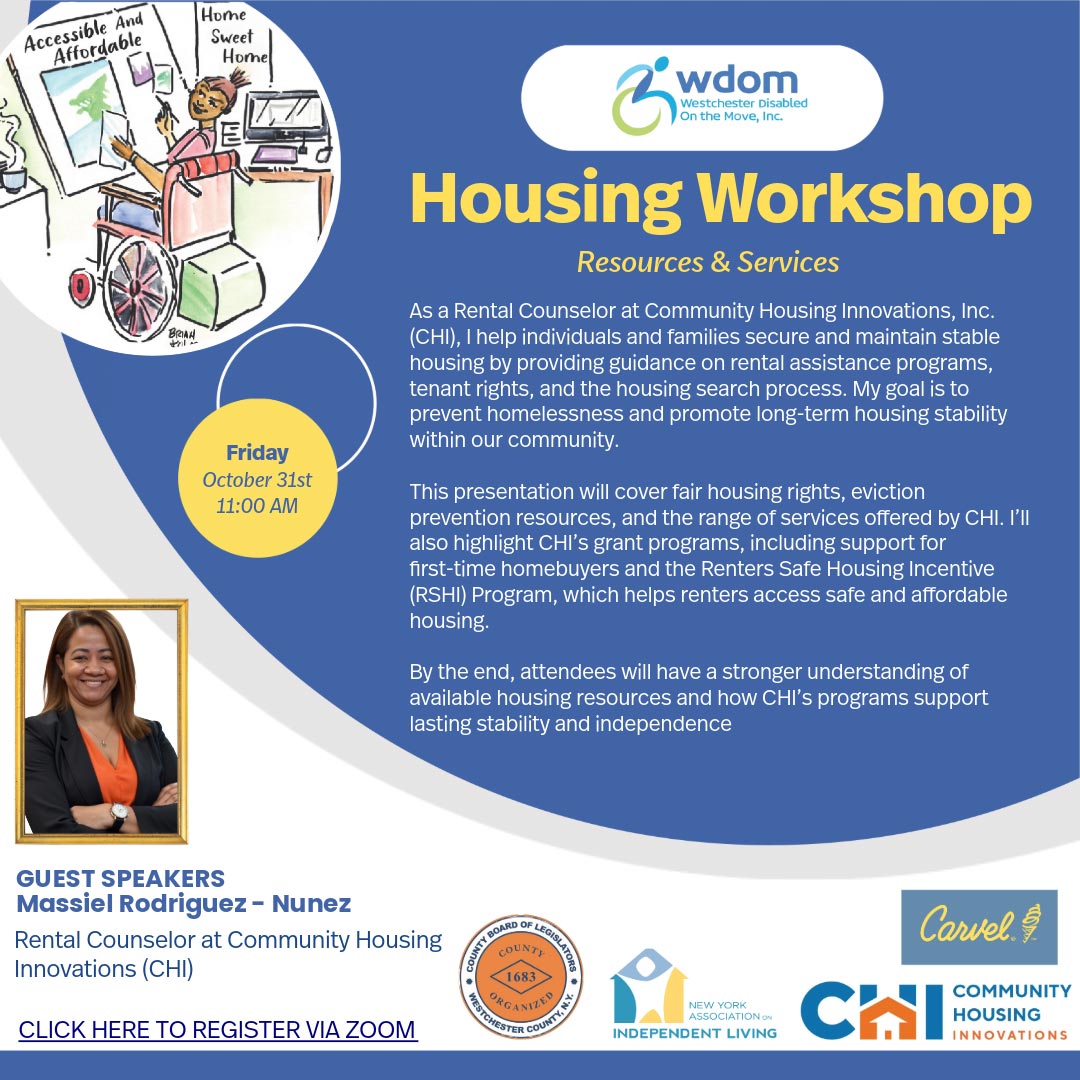 Westchester Disabled on the Move Hosts Forum with 16th District Congressional Candidates Focus to be Accessibility for People with Disabilities Zoom: https://us02web.zoom.us/j/88181039310 Westchester County, NY – October 23, 2024 – Westchester Disabled on the Move, an advocacy group for people with disabilities, has invited Congressional candidates in the 16th Congressional District to discuss accessibility in… Read More »Forum with 16th District Congressional Candidates