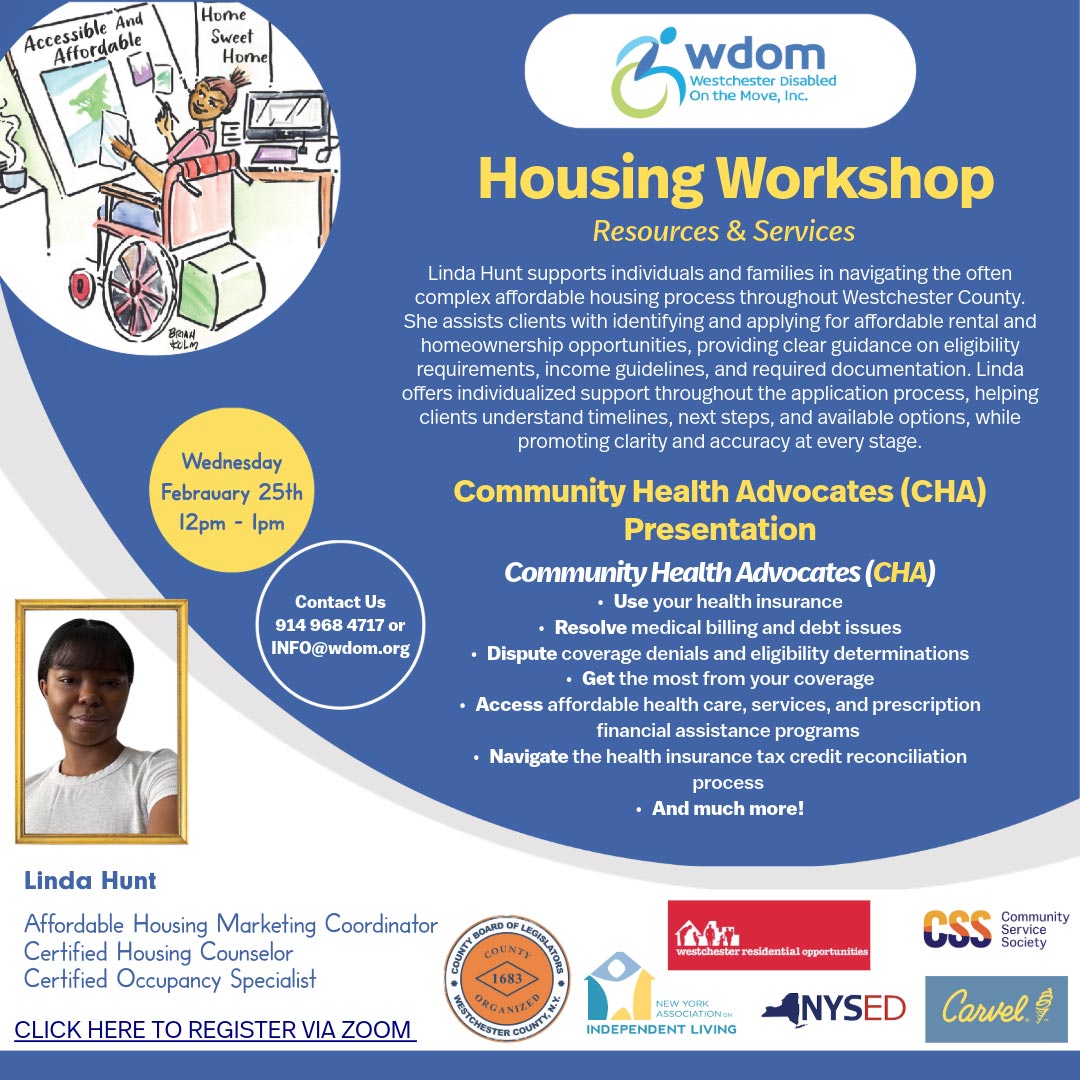 Linda Hunt supports individuals and families in navigating the often complex affordable housing process throughout Westchester County. She assists clients with identifying and applying for affordable rental and homeownership opportunities, providing clear guidance on eligibility requirements, income guidelines, and required documentation. Linda offers individualized support throughout the application process, helping clients understand timelines, next steps,… Read More »Housing Workshop: Resources & Services